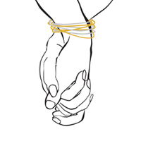 糸で一緒になっているふたりを表現しました。