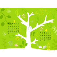 2008年3月4月カレンダーつきイラスト壁紙その3♪