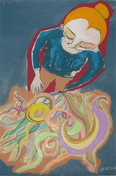 acrylic,wax pastel on paper