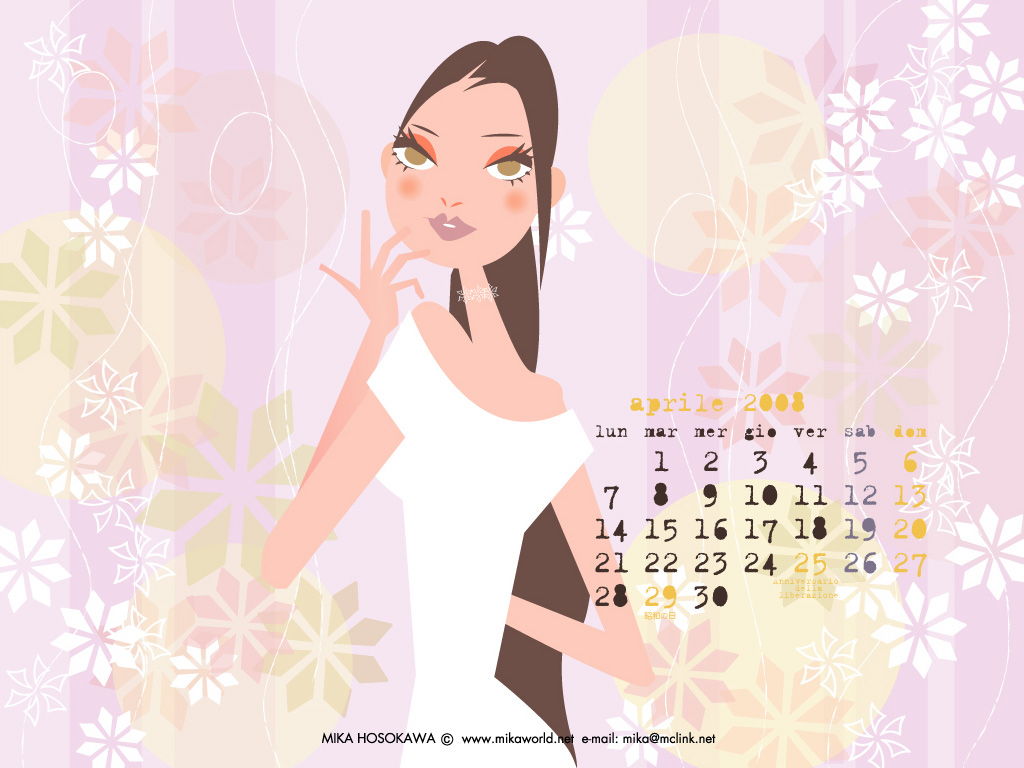 4月のカレンダー付き壁紙です。大きさは1024x768です。日本とイタリアの祝日を載せています。