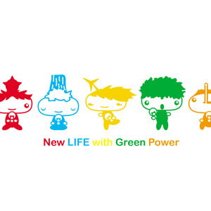 太陽光発電を「赤」、地熱発電を「橙」、風力発電を「黄」、バイオマス発電を「緑」、水力発電を「青」で表現した。