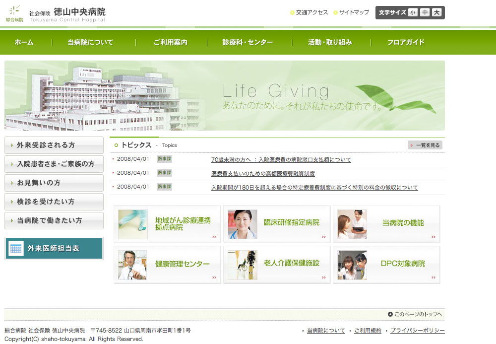 山口県周南市の総合病院、徳山中央病院さまのサイトを制作させていただきました。