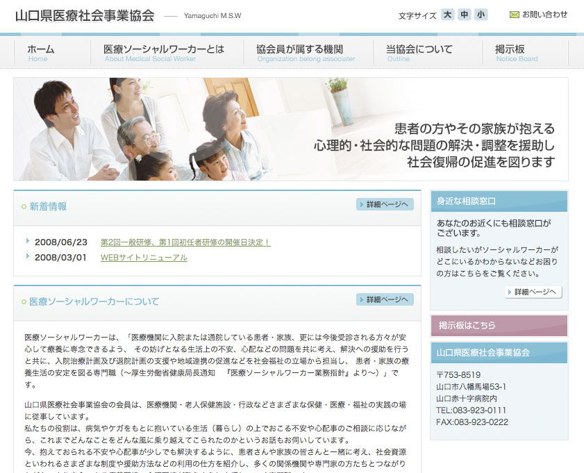 山口県のソーシャルワーカーのための協会である山口県医療社会事業協会さまのサイトを制作いたしました。