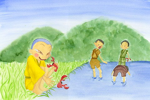 お面をかぶると、あら不思議。人間の姿に大変身。