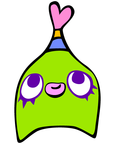 うれしいと、頭のハートが大きくなって、ネコのようになつきます。