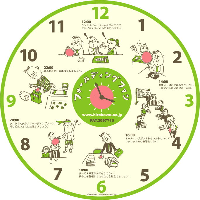 オフィスでささっと出せる、折りたたみ式うちわのデザイン。