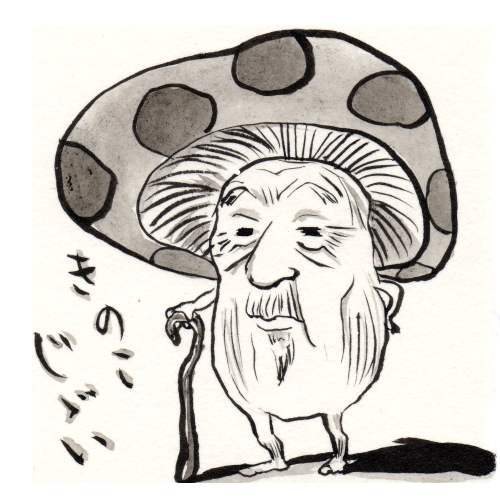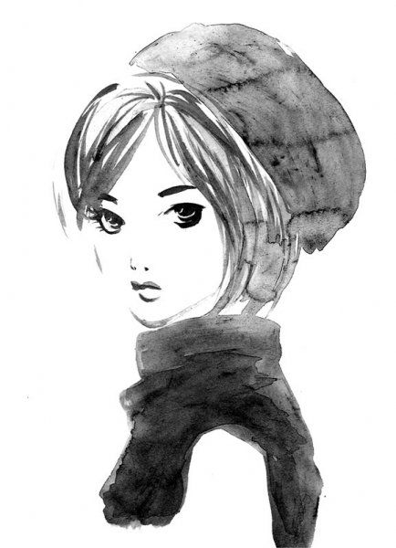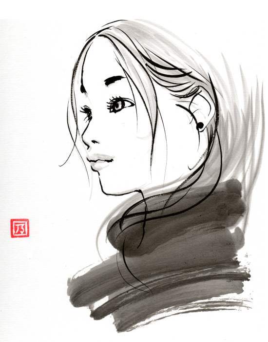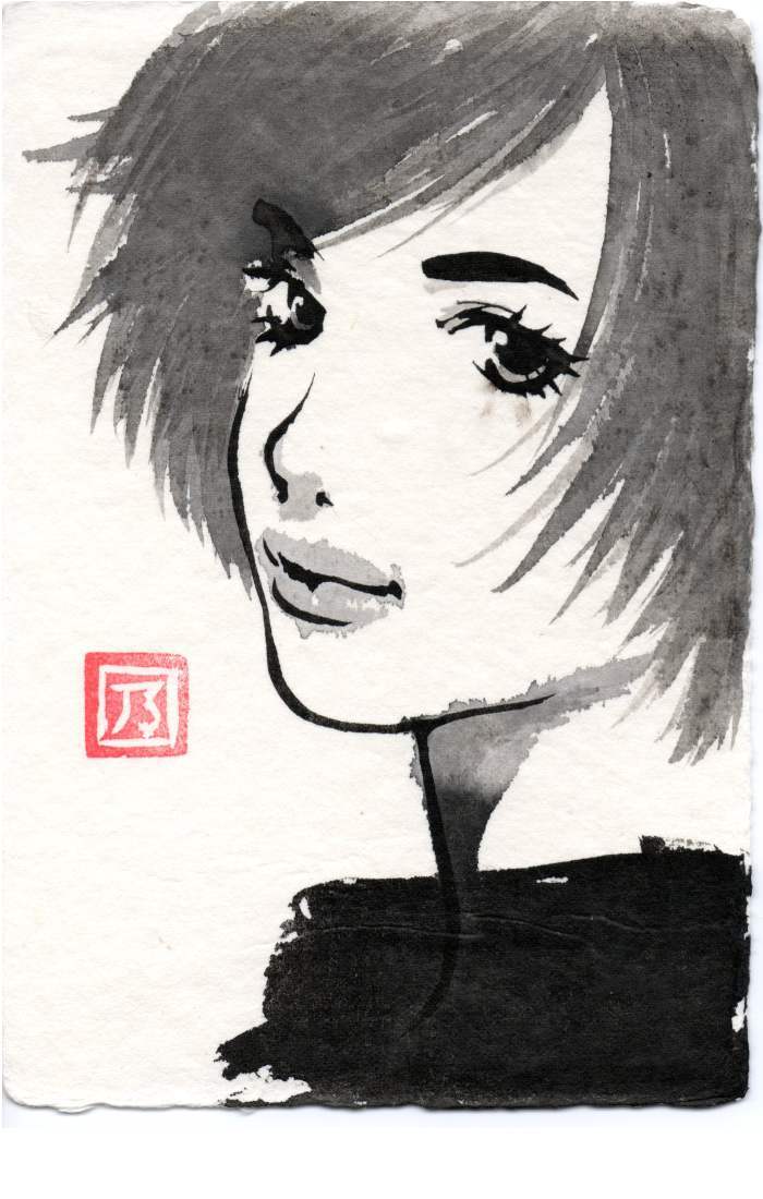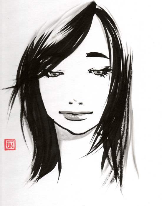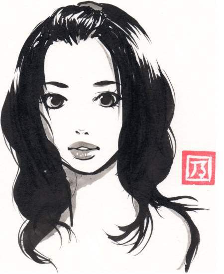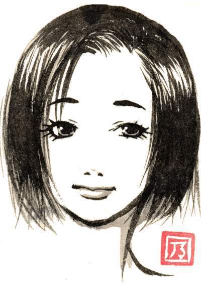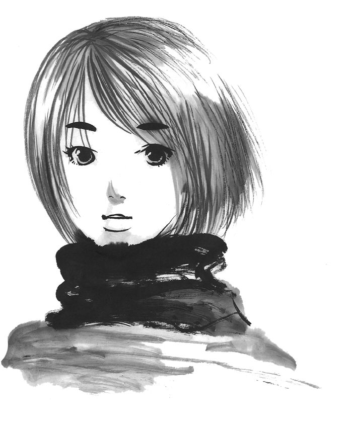 筆と墨を使って描いています。