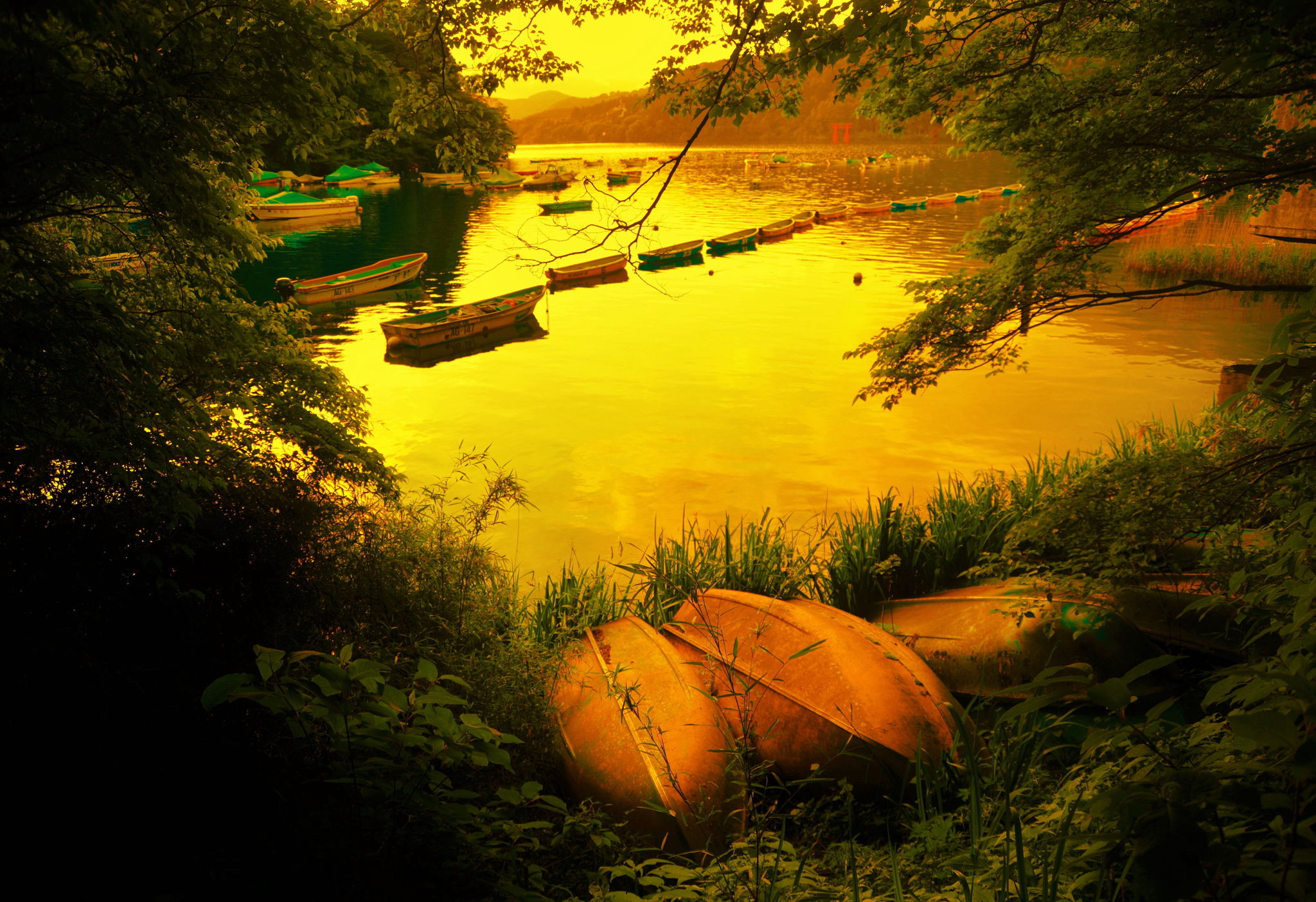 落日の湖畔 - Lakeside in the setting sun