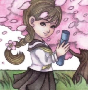 オリジナル アナログ イラスト 創作 水彩 女の子 少女 桜 セーラー服 三つ編み