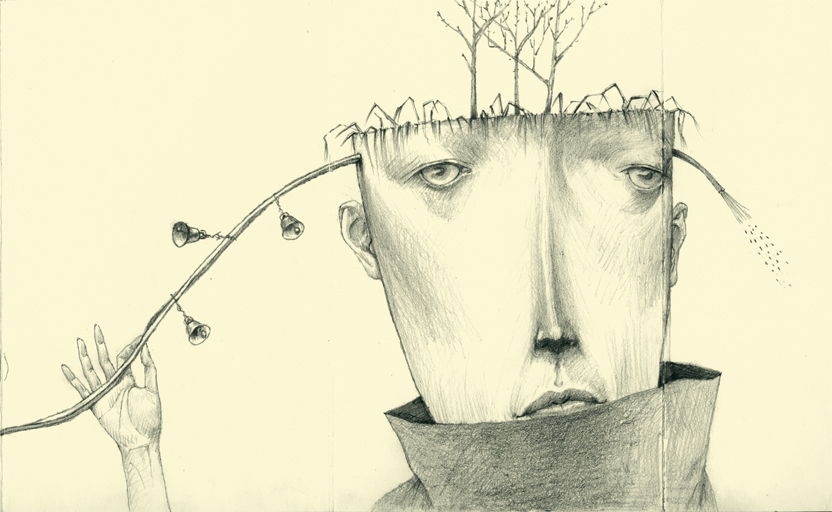ルドンの狂人みたいなんを描こうとしてんけど、こうなりました。