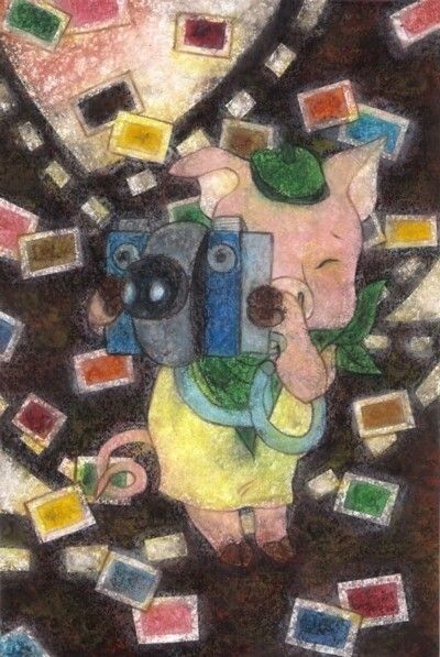 Photographer original analog illustration creation animal pig crayon camera photograph dirty