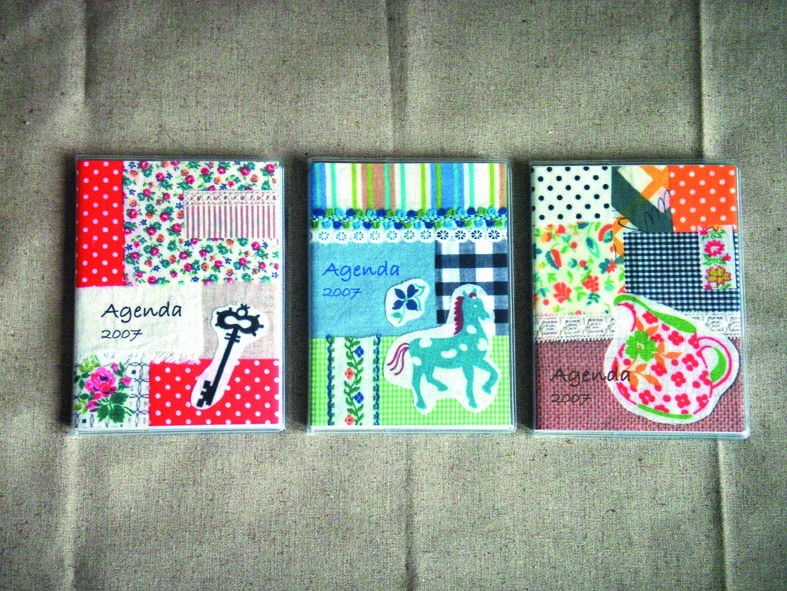 アンティークの生地やボタン、チロリアンテープなどでコラージュ