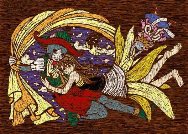 オリジナル イラスト 創作 猫 お助け ネズミ 少女 女の子 動物 版画っぽいCG