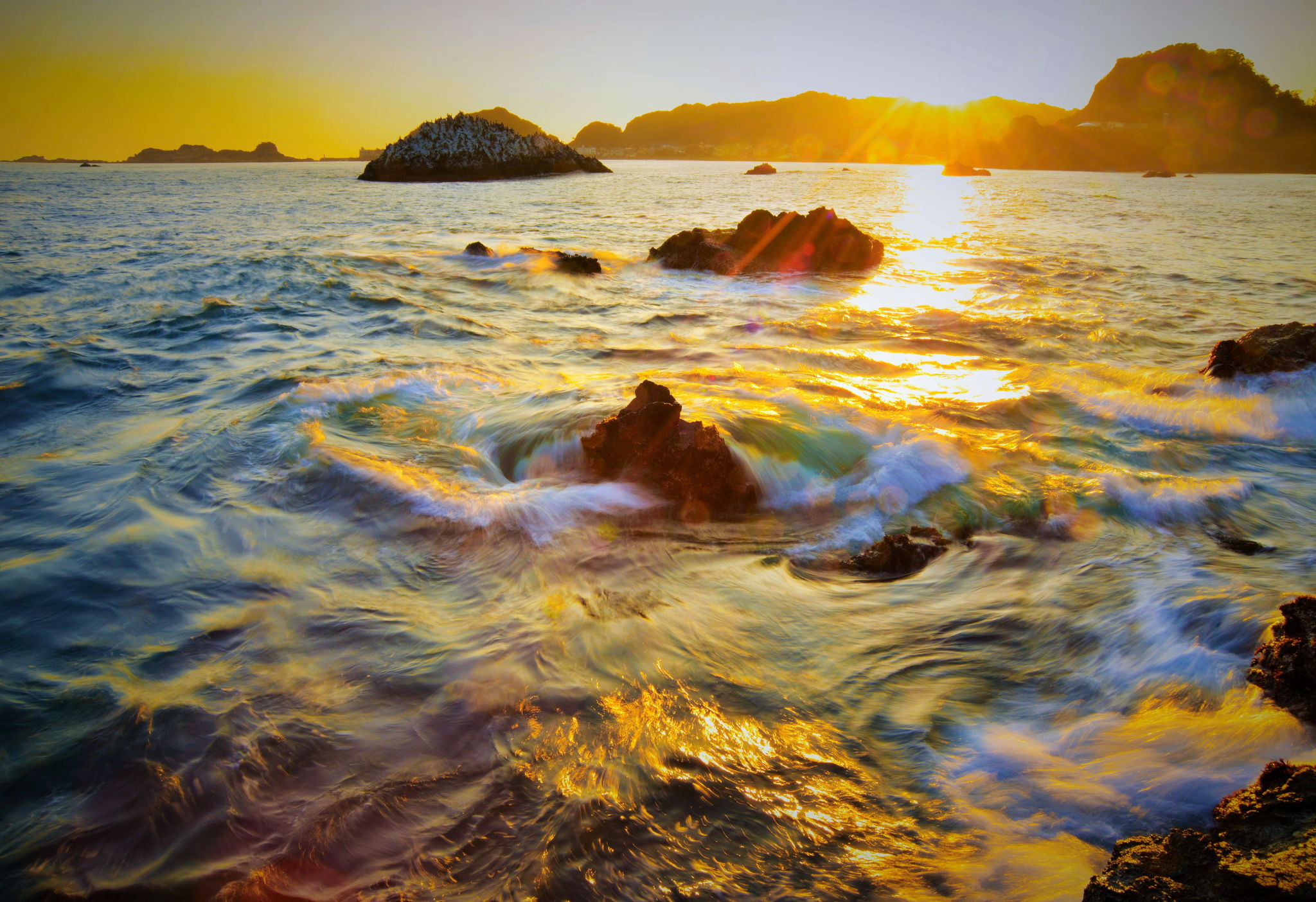 岩場に出ると怖い程の大きな波が海岸に次々と