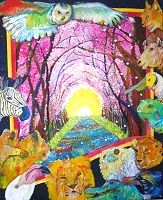 この絵は、生まれたばかりのポレオがカンガルーと出会うシーンです。