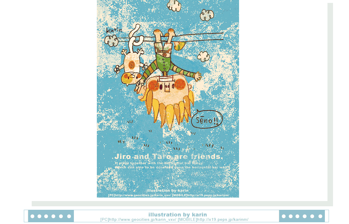 太郎くんと次郎君はとっても仲良し。一緒にせーのでぶらさがり。ふたりで一緒にぶらりんこ。