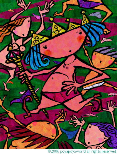 裸で行進する王様を見て子供達は叫びました。