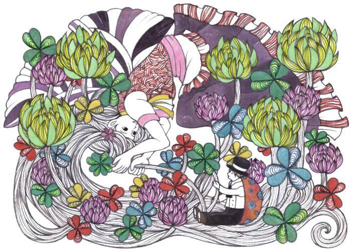 オリジナル アナログ イラスト ドローイング メルヘン 女性 少女 少年 植物 妖精
