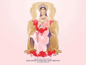 三日月角の女神・丑年イラストをデスクトップ壁紙にしたものです。個人でのお楽しみにご利用ください。製作者に許可のない商用利用はご遠慮ください。1024x768サイズとなります。