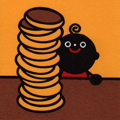 切り絵で作ったちびくろさんぼのイラストです。ホットケーキを食べるシーンが大好きです。