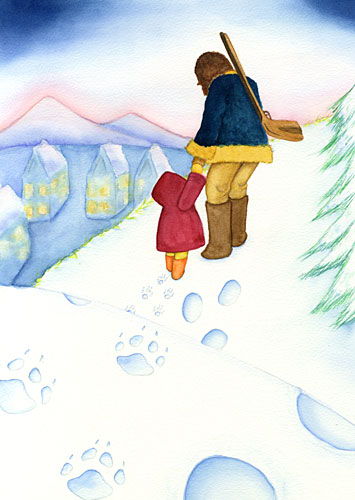迷子の仔を送り届ける親切な猟師のおじさん。