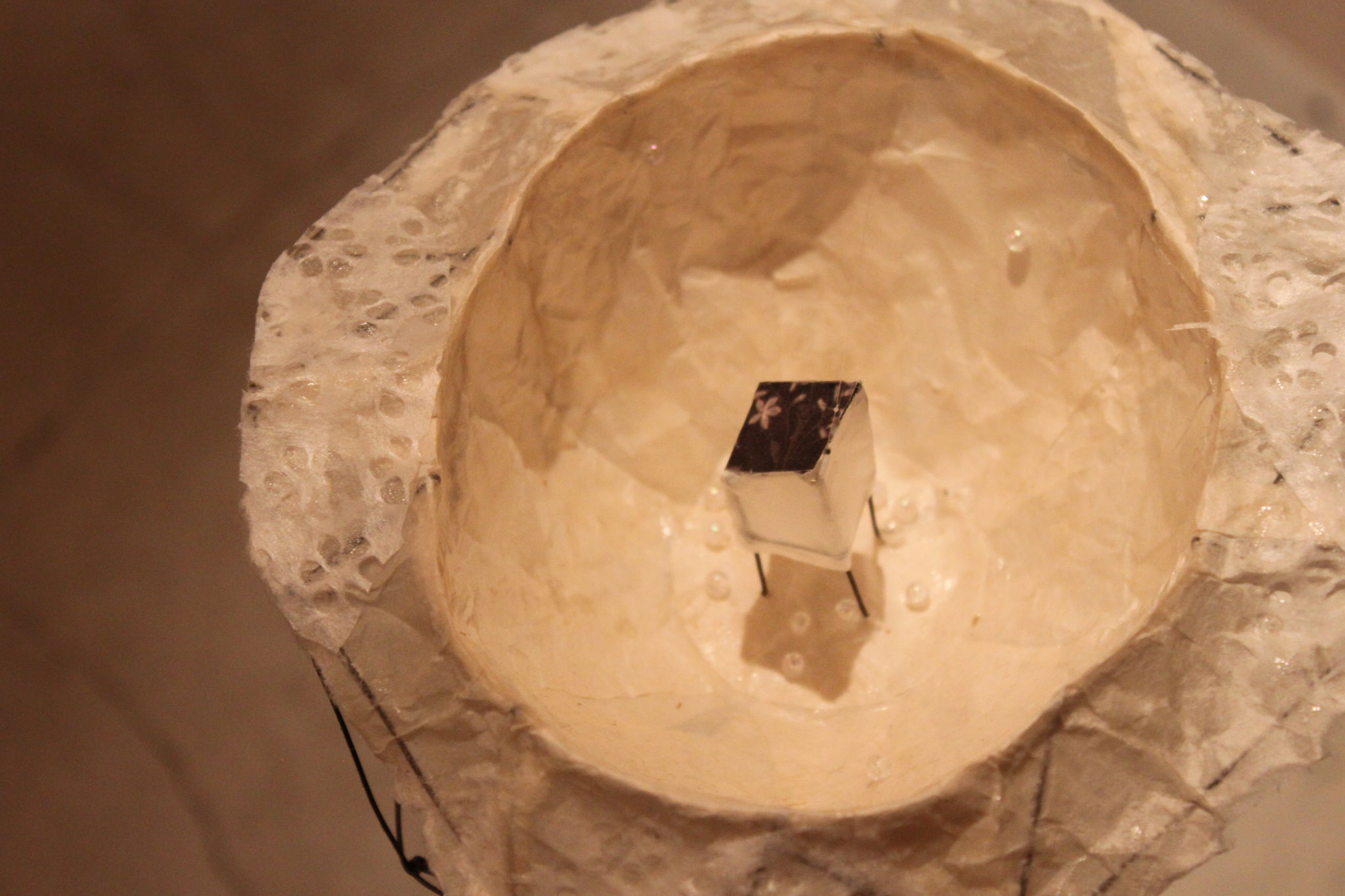 空間の中に小さな島々が浮かび、空気の流れによって揺れ、回っている。