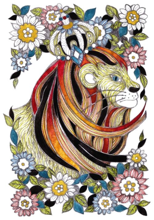 original analog illustration drawing flower lion king animal