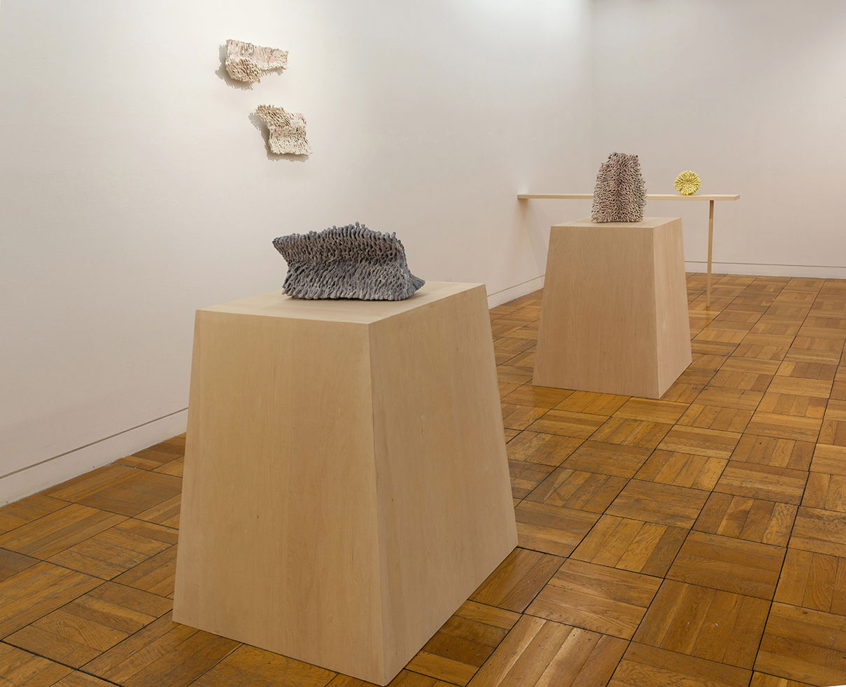 感覚や衝動を生み出す為には、目先で出来上がってくる形にとらわれないように、やきものの工程や仕組みを利用して、制作中に「作りなれない」環境下に自分をおくことを大切にしています。そうすることで、まるで暗闇でドローイングをするかのように、目先のことではなく、もっと感覚的に指先が導いて、形を作りあげていきます。
