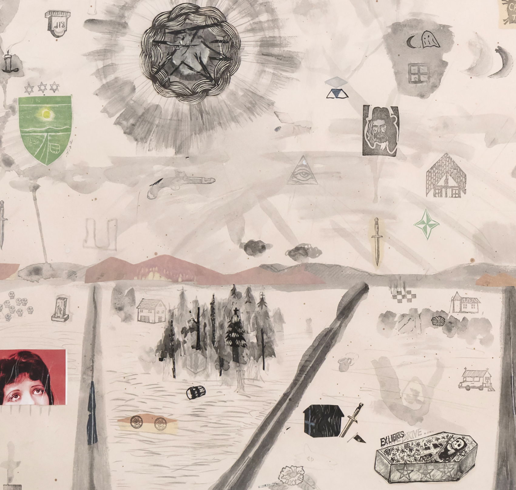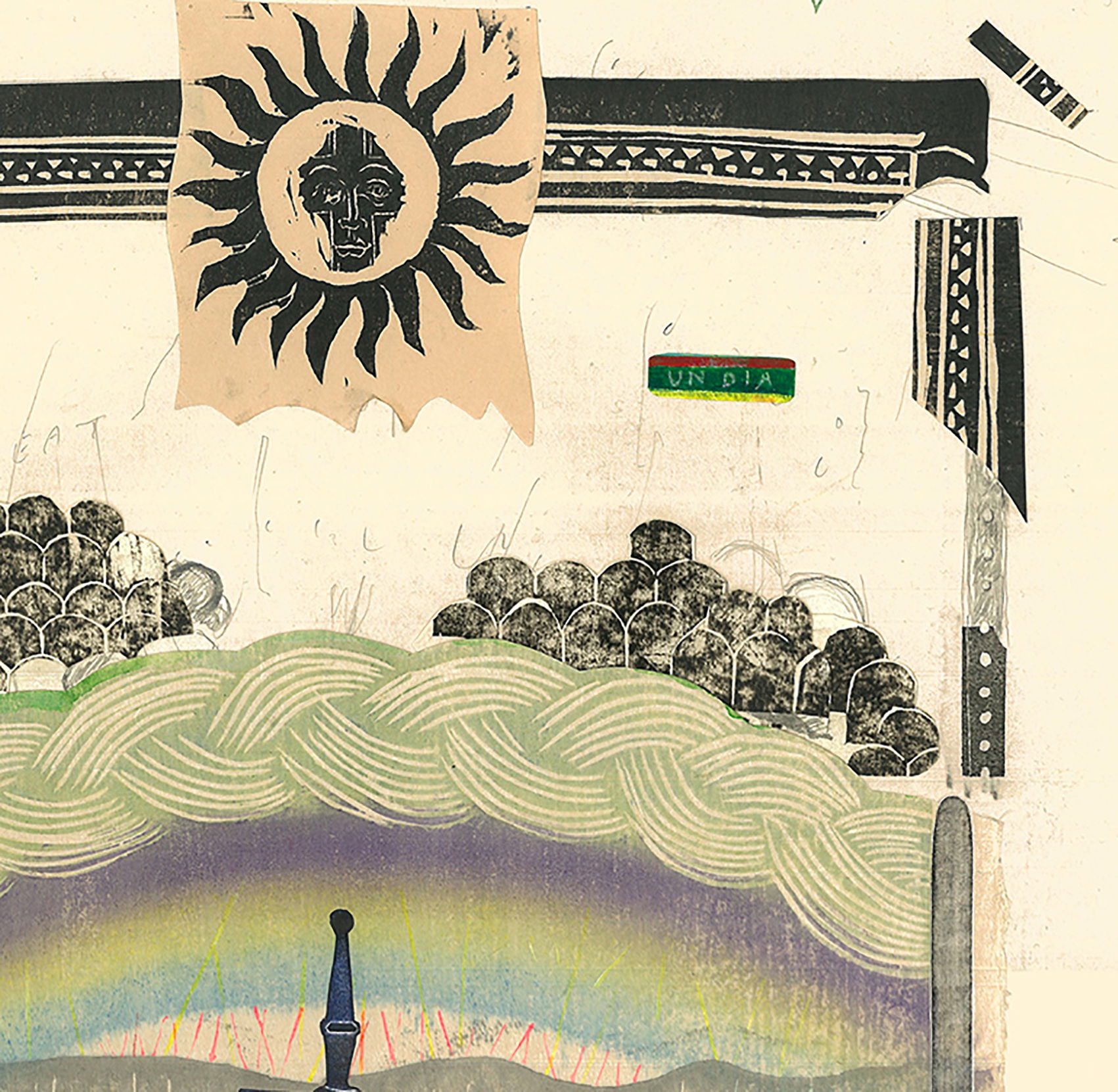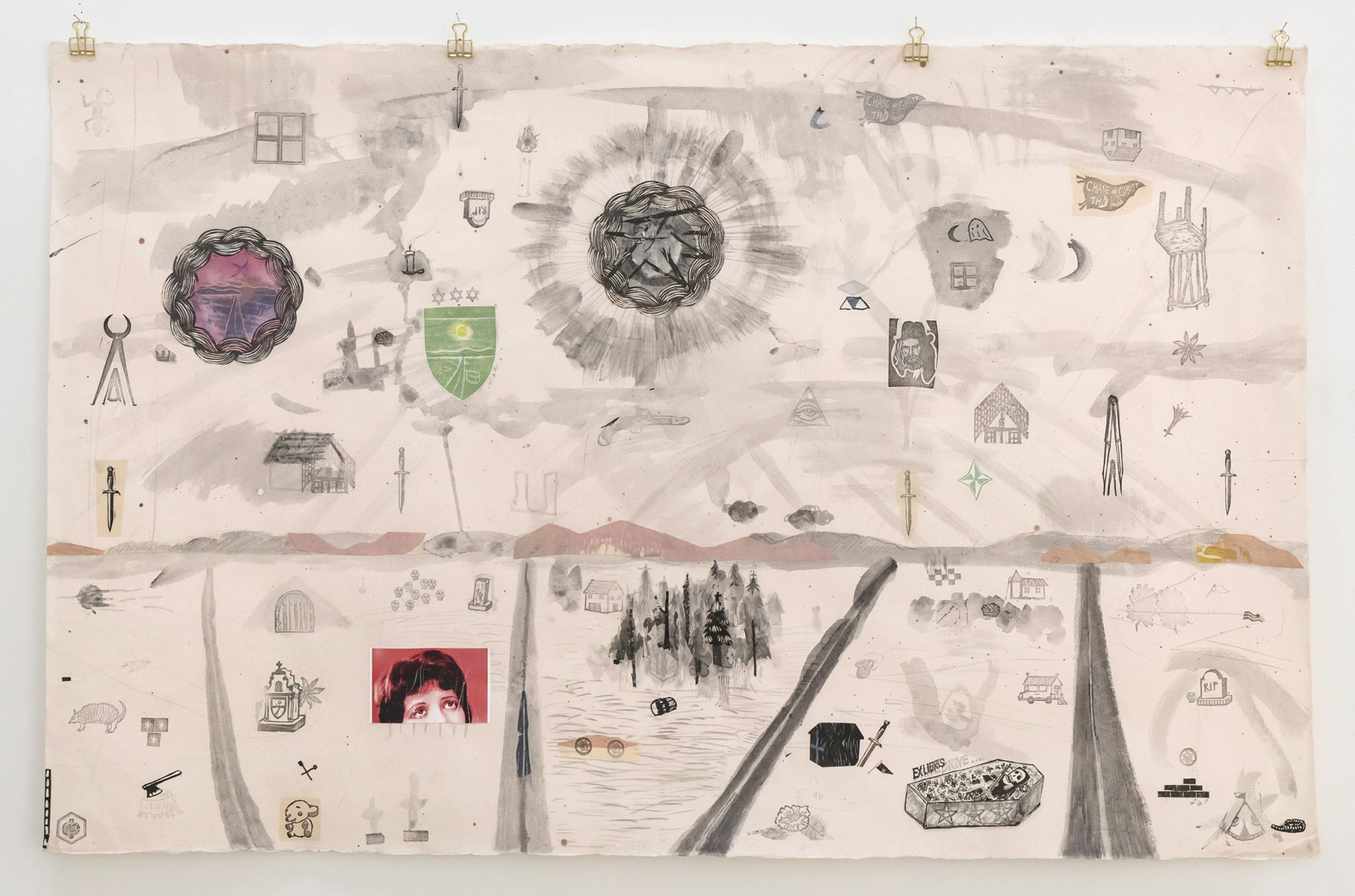 Caption"Braids" ink,graphite, collage on Japanese paper, 1000mm x 620mm 2017