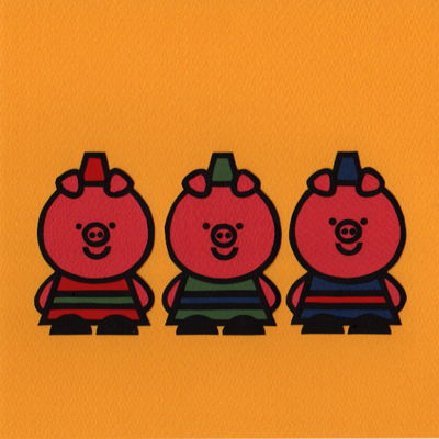 切り絵で作った「さんびきのこぶた」の絵本です。