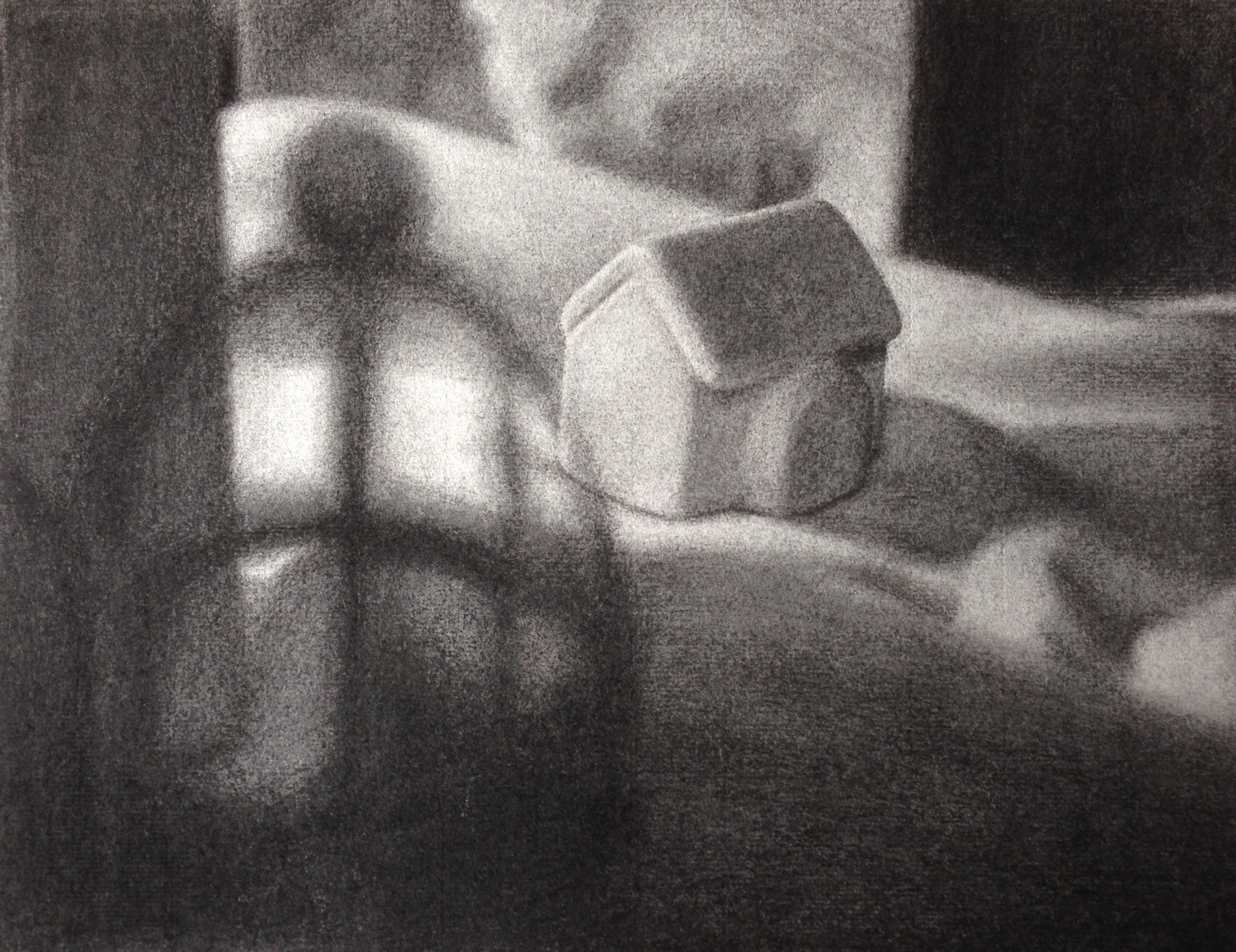 普段取り組んでいるテーマ、手のひらに乗るような小さいモチーフを大きな風景に見立てて描くGrandscapeシリーズから、デッサンを中心に展示する。今まで家やイスなど具体的なモチーフがあったが、新たな展開としてそれらを省いたよりシンプルな構成の新作も発表する。見たことあるような、でも知らない景色が目の前に立ち上がるのが面白い。静謐で豊かな、ここではないどこか。