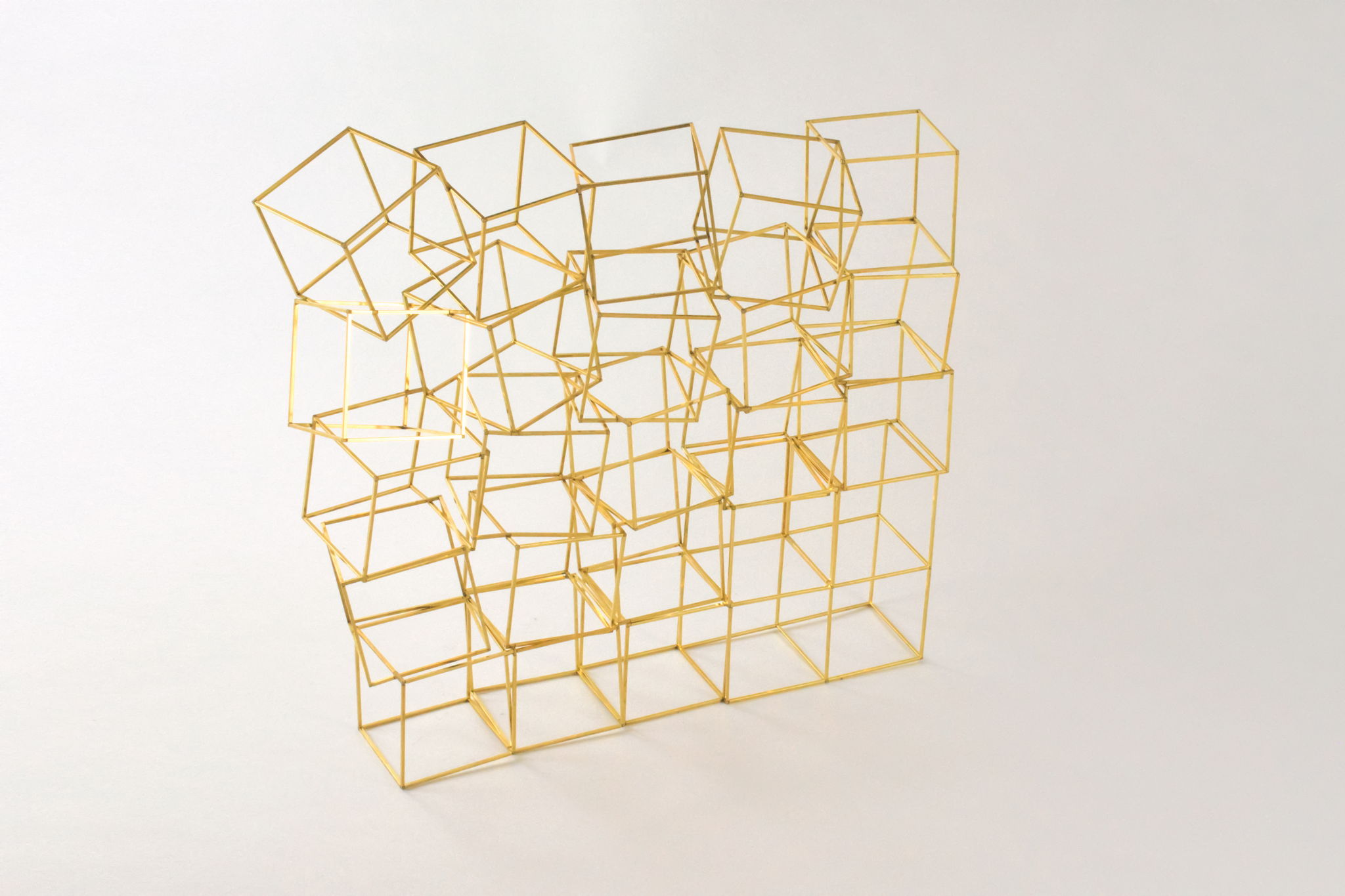 Cubeという幾何学形態を用いながらも、Cubeが少しずつ傾きを変化させながら並んでいくことにより、あたかもCubeが自己増殖し成長していくかのような生命感が生まれている。