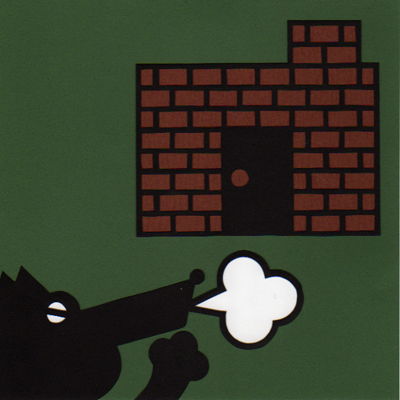 切り絵で作った「さんびきのこぶた」の絵本です。