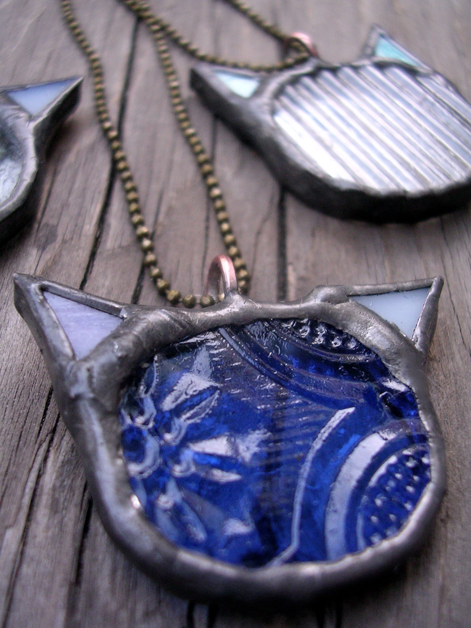 猫顔のネックレス。色違い、顔付きバージョン等猫の額さんにて委託販売中。