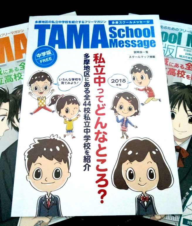 雄飛企画さん発行の多摩地区の私立中学を紹介するフリーマガジン「TAMA School Message 〈中学版〉」の表紙を担当させて頂きました。