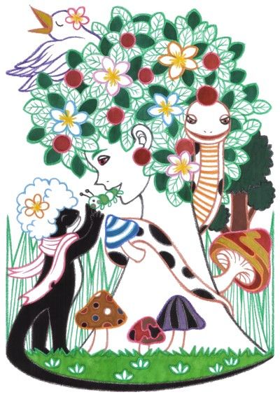 擬人化 アフロ トカゲ 蛇 カラフル ドローイング アナログ メルヘン Personification Afro lizard snake colorfulness drawing analog fairytale