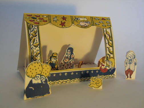 絵本「画家がふねにのったとき」に沿ったトイシアター。スクリーンプリント、組み立て時A6サイズ