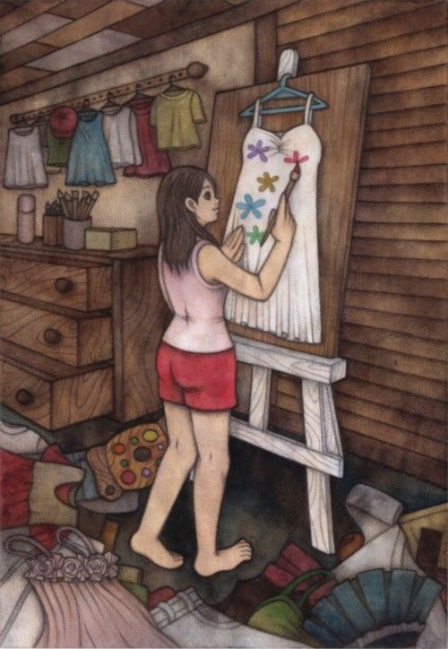 オリジナル アナログ イラスト 女性 水彩 女の子 イーゼル アトリエ original analog illustration woman watercolors girl easel atelier