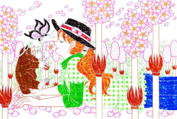 オリジナル 花 メルヘン 少女 女の子 植物 カラフル サイトで壁紙配布中です