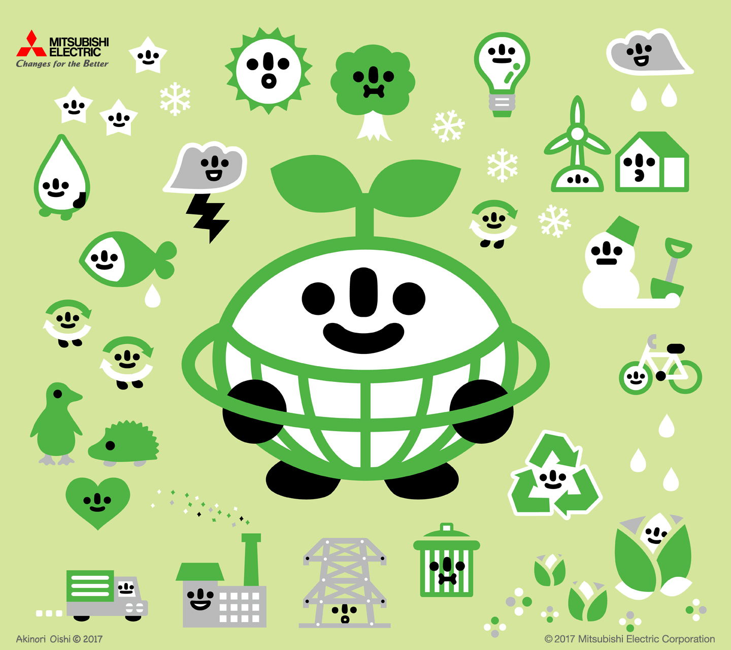ぺんてるの英語表記ロゴの頭文字”P”のなかに、創造のカオスの世界が広がるコンセプトです。その世界観は、花飾りのリースの輪のようなイメージを重ねあわせまして、お祝いようなおめでたいイラストレーションです。これから円へとトランスフォームしてく過程で、いろいろな願いも込めて描きました。 豊かな創造性、始まりも終わりもないいつまでも続く永遠の生命力などです。