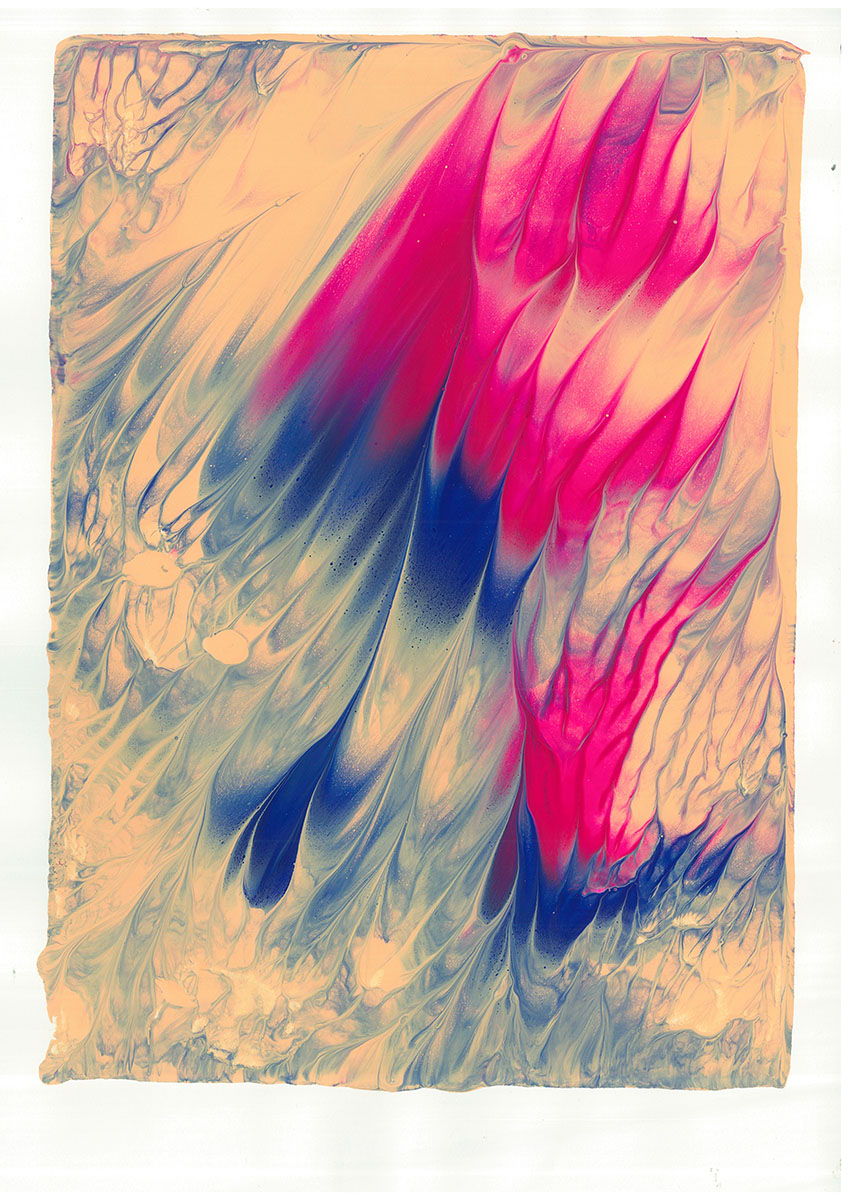 アクリル塗料による色彩とエナージェルインフリーの線画の対比。