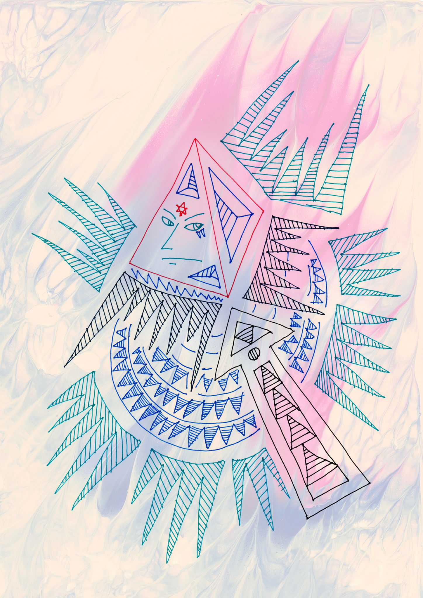エナージェルインフリーを使って描いた線画とアクリル塗料による絵画をデジタル合成。