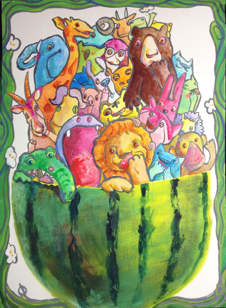書く事が必要な時も、ただなんとなく手をうごかして描く落書きも、お気に入りのかき心地のペンがあると、ちょっとしたストレス解放になる。お気に入りの音楽を聞いたり、好きな食べ物をたべるのと同じ、好きなペンで書くということ。そんなここちよい気分の中にいるというイメージで作成しました。そんな気分でかくと、どんどんおもしろいことがうかび、書くことで、かいたものが次書くもののきっかけをつくりと、次々発想できる力になる。構えなくても、すらすらアイデアがでやすいという、イメージのイラストです