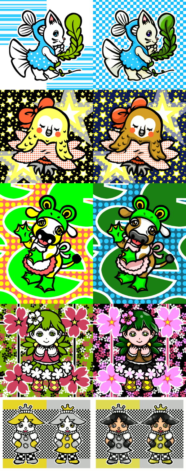 オリジナル キャラクター デザイン ボツ デフォルメ 猫 梟 牛 女の子 男の子