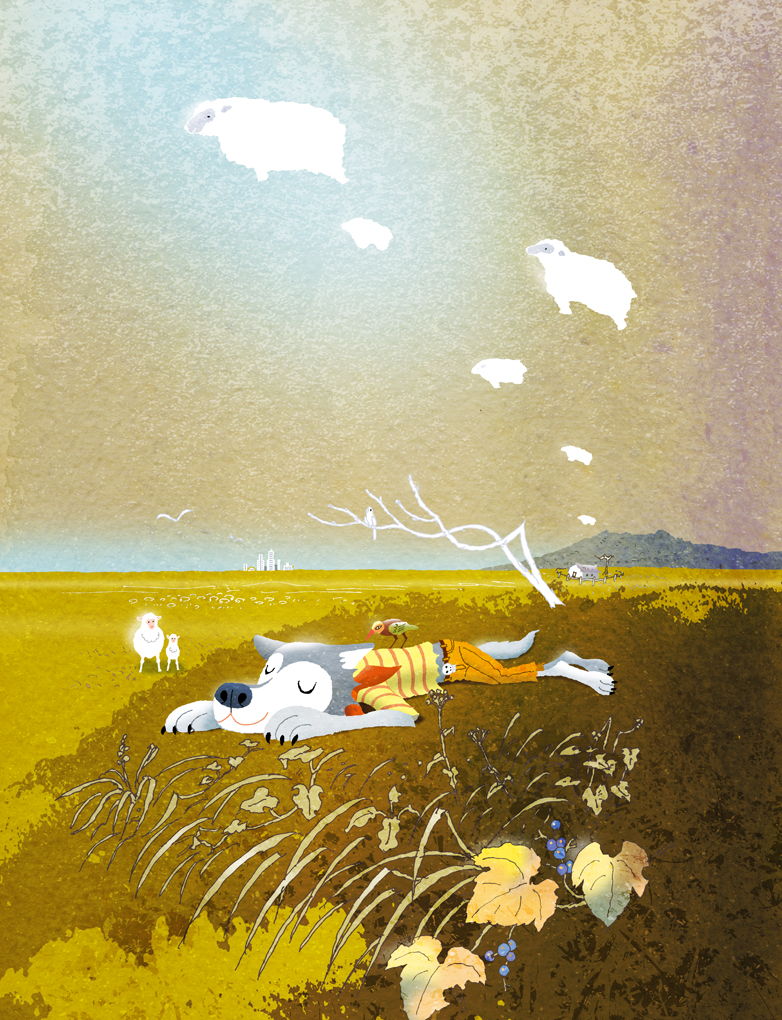 絵本「おおかみのお弁当」挿絵