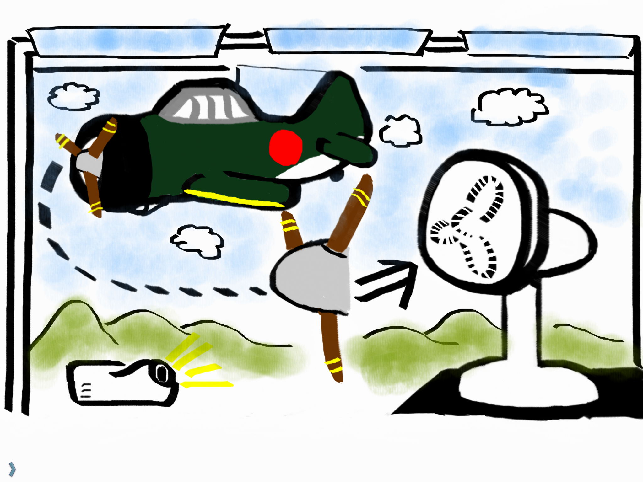 ⚫︎プロペラの回転をセンサーで受け、零戦の風を切る音を取り出し皆んなに零戦の勇姿をイメージさせたい。