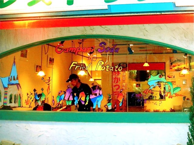 イタリアンレストランの窓に絵を描く