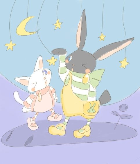 うさぎくんとねこちゃんが星を見ながら話していました。