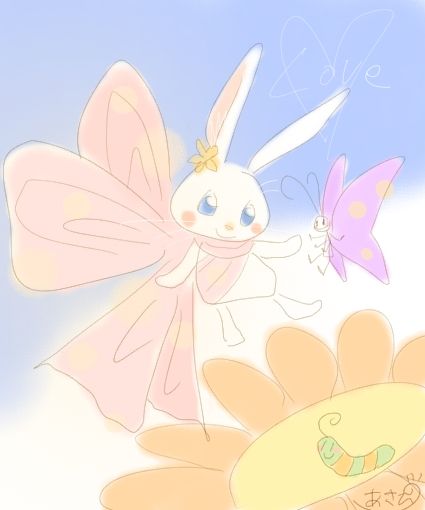 うさぎさんがリボンの羽をつけて、空を蝶ちょのように飛んでます♪