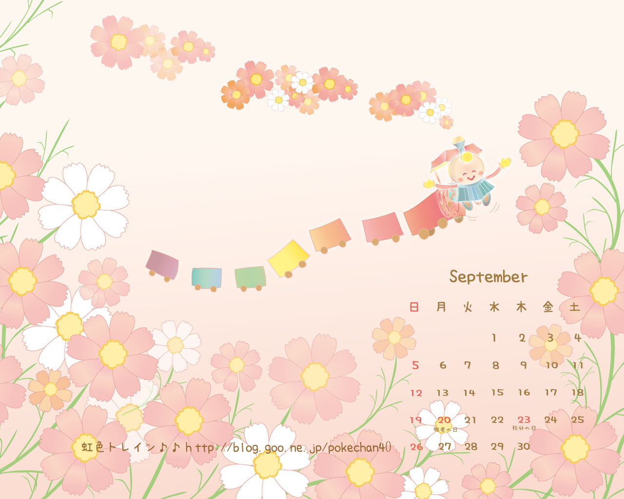 壁紙カレンダー~9月の虹色トレイン♪~